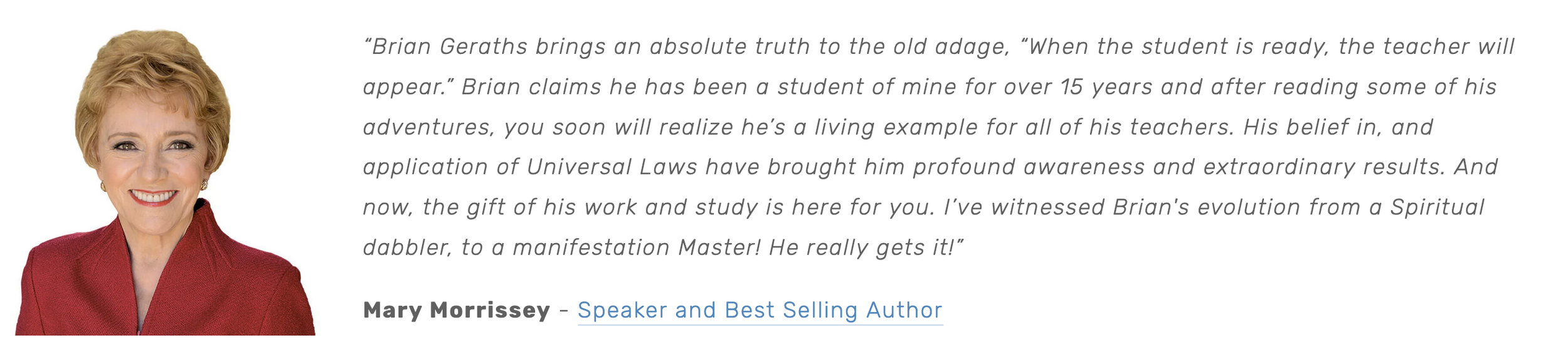 In the summer of 2000, I had an epiphany that led to my study of a variety of less-obvious laws—guiding principles that, when given attention, accelerated my awareness of them. The Law of Thinking—thoughts become things. The Law of Attraction—harnessing the reticular activating system (RAS), which, when mastered, increases our ability to truly manifest our desires.